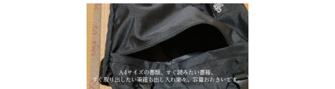 フロントにあるファスナー付きポケットは、チケットやハンカチ、スマートフォンなど“すぐに取り出したいもの”を入れるのに最適。