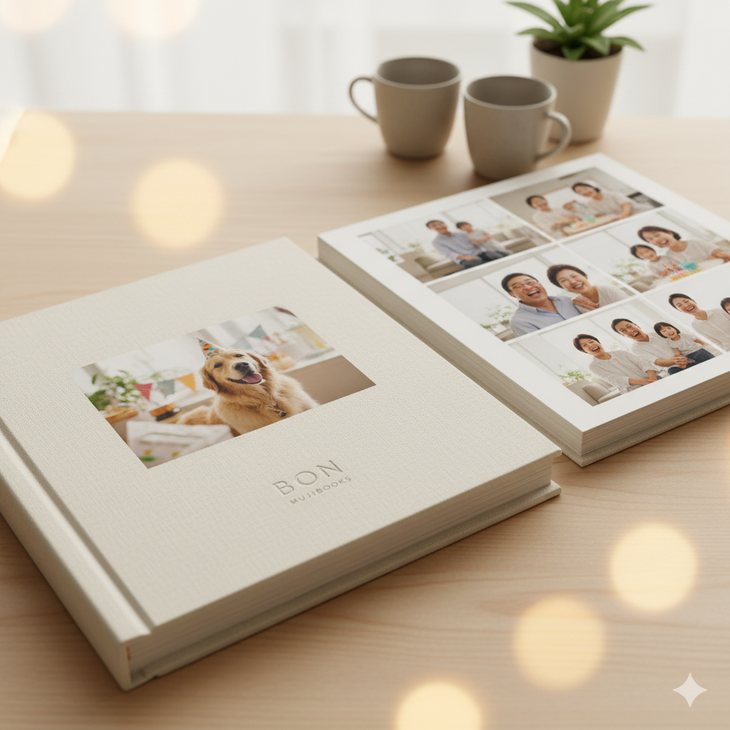 【OurPhoto】【fotowa】の出張撮影で「写り忘れ」をゼロに。そして、厳選した写真をMUJIBOOKSが推奨する写真集サイト【BON】で「手軽に・おしゃれに」写真集にすることで、思い出を色褪せないカタチにできます。